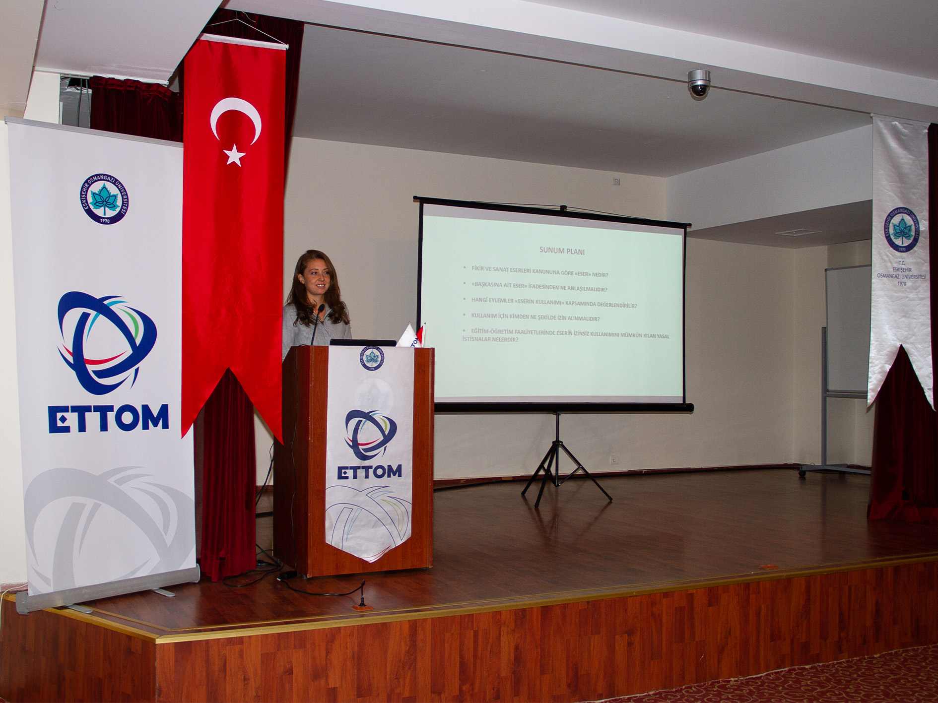 Üniversitemiz Teknoloji Transfer Ofisi (ETTOM) ile Hukuk Fakültesi işbirliğinde “Eğitim ve Öğretim Faaliyetlerinde Başkalarına Ait Eserlerin Kullanımında Yasal Çerçeve” başlıklı bir bilgilendirme toplantısı gerçekleştirildi. Etkinliğin amacı, öğretim elemanlarının ders materyali hazırlarken, derslerde veya dijital ortamlarda kullandıkları içeriklerin 5846 sayılı Fikir ve Sanat Eserleri Kanunu çerçevesinde hangi durumlarda hukuka uygun kabul edileceğini açıklamak ve eğitim ile akademik faaliyetlerde eser kullanımına ilişkin farkındalığı kurumsal düzeyde artırmak oldu.