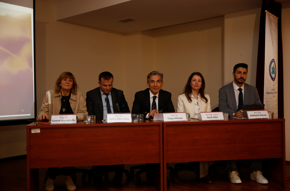 Yürütücülüğünü Dr. Öğr. Üyesi Burcu İrge Erdoğan’ın üstlendiği Eskişehir Osmangazi Üniversitesi Hukuku Fakültesi’nin 223K015 numaralı ilk TÜBİTAK projesi, sektörel sürdürülebilirlik uygulamalarını mevzuat düzenlemeleriyle beraber ele alıyor. Hukuk Fakültesi Dekan Vekili Prof. Dr. Emine Gümüşoy’un açılış konuşmasıyla başlayan sempozyumda akademisyenler, uygulamacılar ve öğrenciler bir araya geldi.